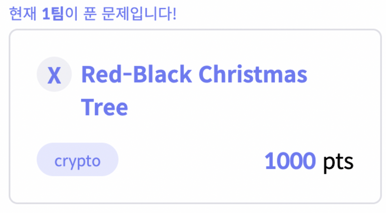 red-black tree는 많은 곳에서 사용되는 self-balancing binary search tree이므로 해당 문제에서 이와 관련된 것을 다룰까 하여 기대했으나, 아쉽게도 그렇지는 않았다. 아직까지 문제 제목이 왜 이런지는 의문이다만, 크립토 문제 중에서는 난이도가 있어 솔브수가 적은 문제였다.